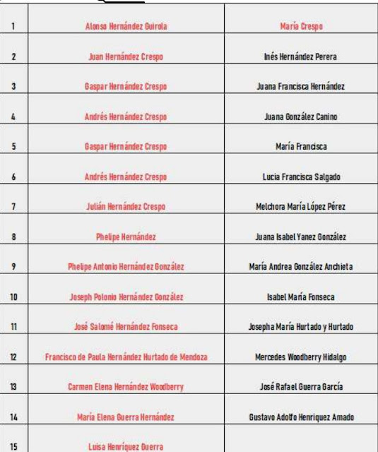 ALONSO HERNÁNDEZ Y GUIROLA Y MARÍA CRESPO, 1era. generación, fueron padres de: